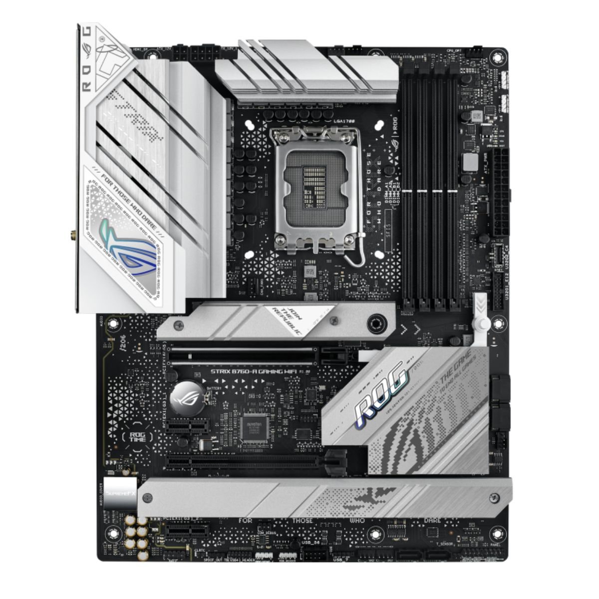 La Mother 1700 Asus Rog Strix B760-A Gaming WiFi es la combinación perfecta entre estilo y funcionalidad diseñada específicamente para jugadores apasionados. Con su diseño futurista en tonos plateados y negros, esta placa madre de alto rendimiento garantiza estabilidad y potencia para los procesadores Intel de 12ª y 13ª generación, ofreciendo la mejor experiencia en gaming.