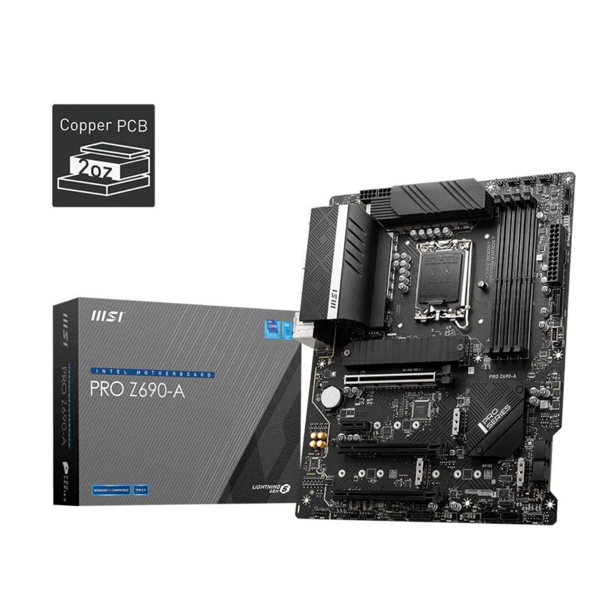 La motherboard MSI PRO Z690-A DDR5 es una opción de primera línea diseñada para soportar los procesadores Intel de 12ª generación con el zócalo LGA 1700. Integra la última tecnología DDR5, ofreciendo velocidades de transferencia de datos impresionantes y capacidad para ejecutar aplicaciones exigentes con facilidad. Su compatibilidad con memoria DDR5 permite alcanzar velocidades superiores, brindando una experiencia fluida y rápida.