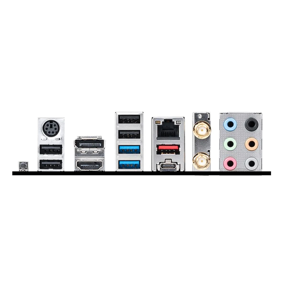 Además, la placa incluye un impresionante panel trasero con múltiples opciones de conectividad, como puertos USB 3.2 Gen2, USB tipo C, HDMI 2.1 y DisplayPort 1.4, brindando versatilidad para diversos periféricos y monitores de alta resolución.