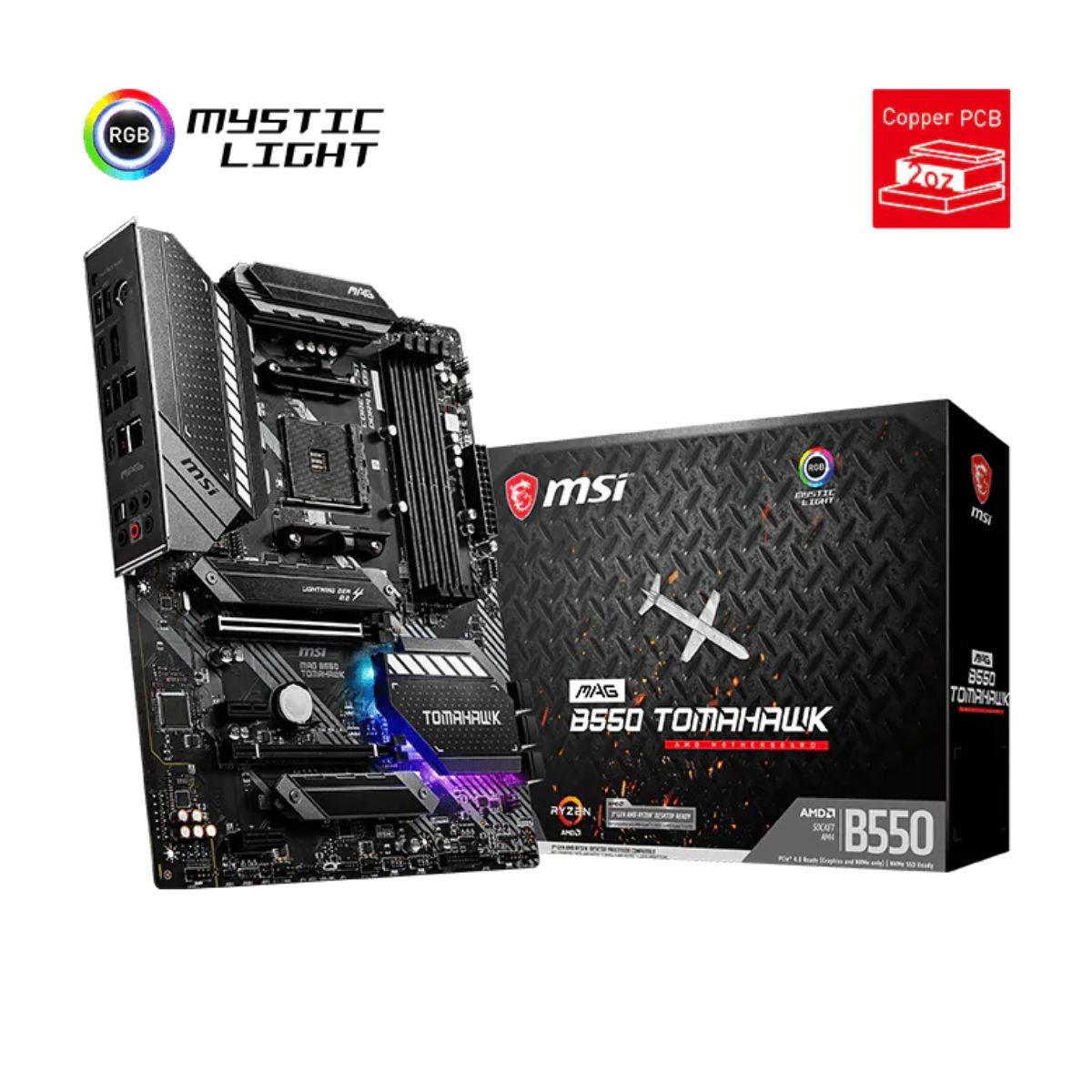 Con características adicionales como soporte para audio de alta definición, iluminación Mystic Light RGB y construcción sólida de calidad militar, la MSI B550 Tomahawk combina rendimiento, durabilidad y tecnología de vanguardia. Es la elección ideal para gamers y profesionales en busca de un rendimiento impecable.